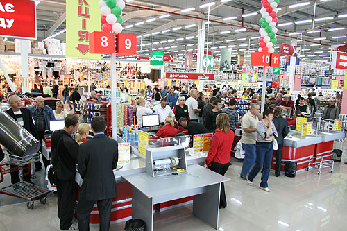 Ровно в 9 часов утра торговый центр начал свою работу. Первые посетители слегка терялись от огромного ассортимента товаров. И не редко можно було услышать легкий спор между мужчинами и женщинами о том, какой отдел все-таки стоит посетить первым.