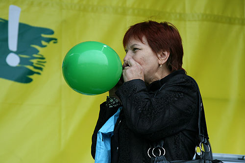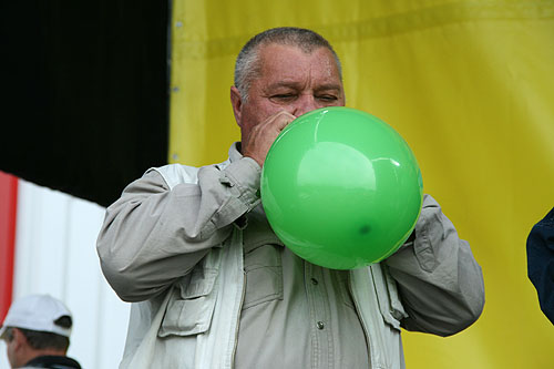 Их дети радуются полученным в подарок шарикам и фирменным флажкам.
