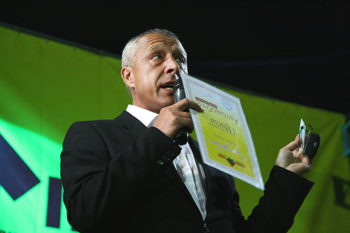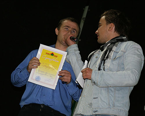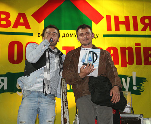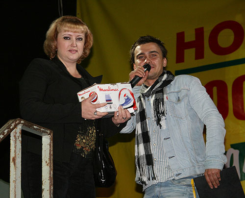 Перед розыгрышем главного приза на сцену поднялся Глава Правления АТ "Новая Линия" - Олег Леонидович Шандар. Олег Леонидович поблагодарил всех тех, кто совершал покупки в эти дни в "Новой Линии", участвовал в конкурсах и розыграшах. И вручил ключи от автомобиля Форд Фокус, предоставленного компанией Henkel Bautechnik совместно с Новой Линией, победителю, который, очевидно, больше других верил в свою победу.