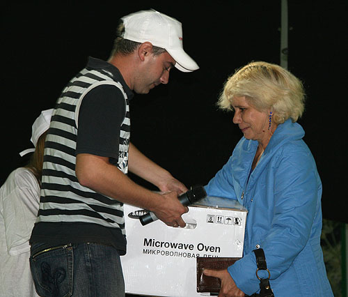 В 19:30 несколько тысяч покупателей собрались у сцены на территории гипермаркета, чтобы принять участие в главном розыгрыше. На лицах людей были улыбки, ведь на протяжении двух дней "Новая Линия" дарила всем покупателям подарки, разыгрывала множество призов, организовывала конкурсы.