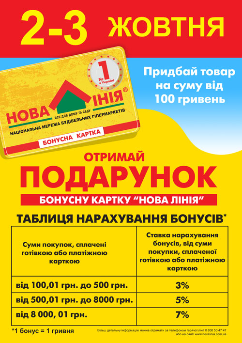 Для тех, кто совершит покупку на сумму более 100 грн., предоставляется возможность оформить клубную бонусную карточку по специальным условиям.