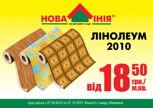 Национальная сеть декоративно-строительных гипермаркетов «Новая Линия» представляет Линолеум по специальной цене 18,50 грн за м.кв.