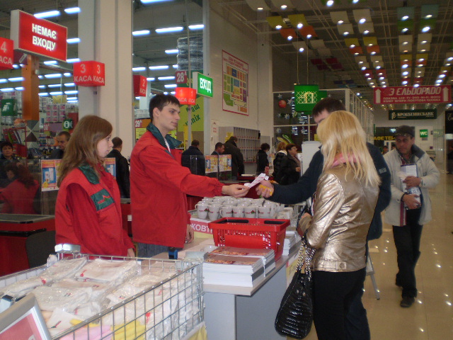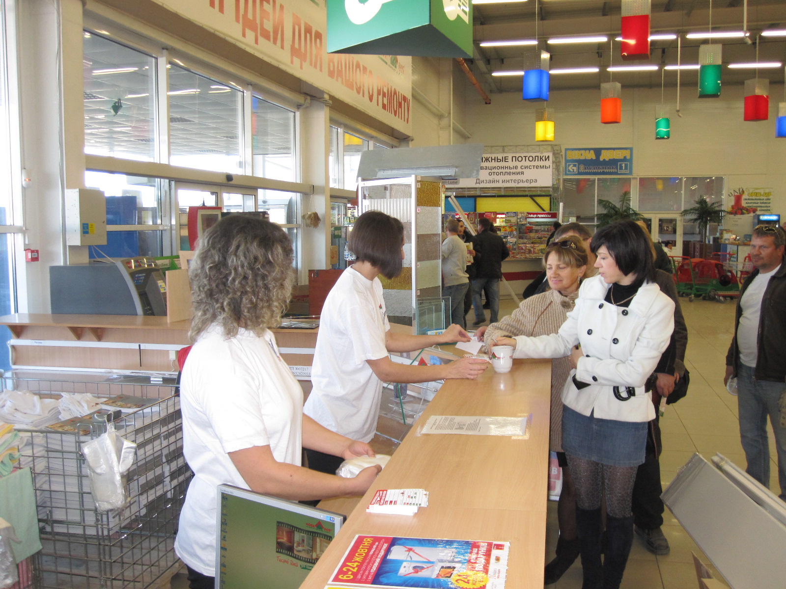 Сотни покупателей получили в подарок сувенирные футболки, ручки, полотенца.