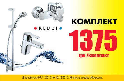 Национальная сеть декоративно-строительных гипермаркетов «Новая Линия» предлагает Вашему вниманию набор функциональных, качественных и красивых комплектов смесителей от ТМ KLUDI, производства Германии, по специальной низкой цене - всего 1375 грн.