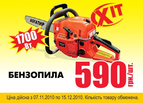 Национальная сеть строительных гипермаркетов «Новая Линия» совместно с ТМ «Мурани»  предлагают Вам новинку: надежную и экономичную Бензопилу «Богатырь» CS 4500 по суперцене 590 грн.
