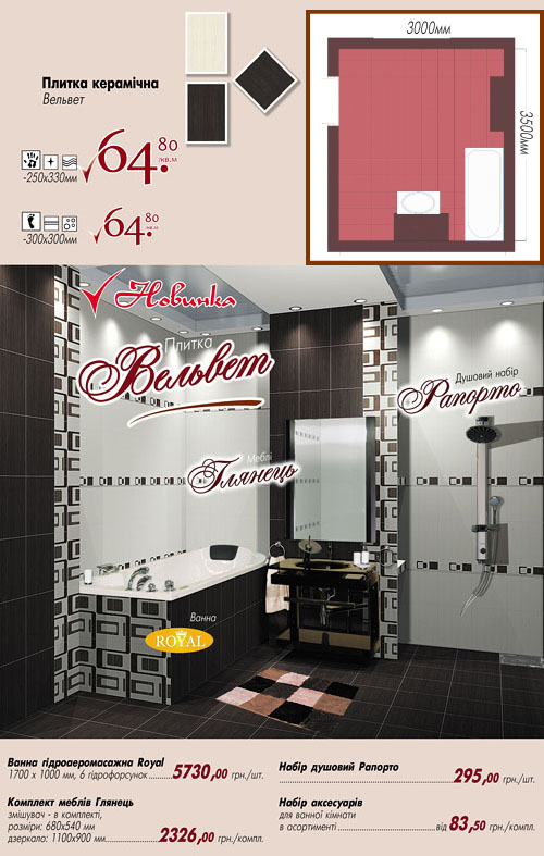 Для современного потребителя, идущего в ногу со временем, кроме качественного товара по доступной цене необходимы еще готовые решения по совмещению того или иного вида кафеля, уже разработанные идеи для тех или иных помещений. Именно поэтому были совмещены усилия «Новой Линии» и «Голден тайл» в разработке готовых решений. Такие комфортные дизайны можно приобрести в «Новой Линии» как для ванной 5 м2,так и для 10 м2.