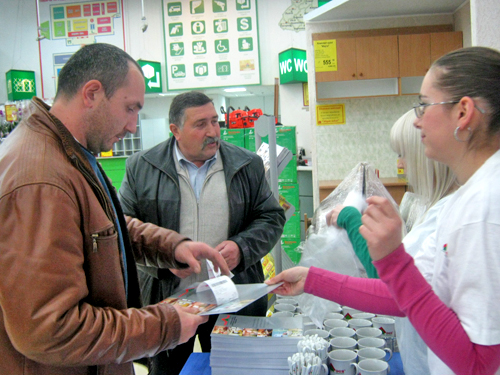 В благодарность за покупки покупатели получали и продолжают получать подарки от "Новой Линии" - ручки, блокноты, чашки и футболки.
