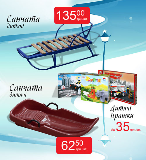 Для самых маленьких в «Новой Линии» можно приобрести санки от 62.50 грн для веселого катания по зимним заснеженным горкам, разнообразные игрушки - от конструкторов до радиоуправляемых машинок по ценам от 35 грн.