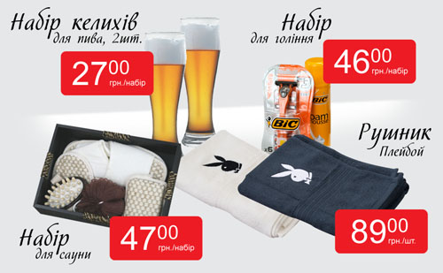 Наборы для бритья, полотенца, банные наборы и пивные бокалы обязательно порадуют Ваших мужчин. Цены на подарки приятно удивят. В «Новой Линии» Вы сможете найти и бюджетные варианты - от 27 грн и более солидные подарки, которые будут радовать любимых мужчин весь 2011 год!