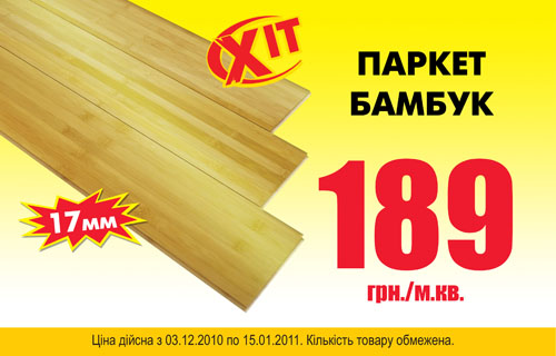 Национальная сеть декоративно-строительных гипермаркетов «Новая Линия» предлагает Вашему вниманию сверхпрочный, экологически чистый и красивый БАМБУКОВЫЙ ПАРКЕТ по суперцене - всего 189 грн за м2