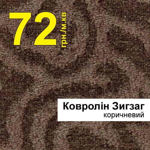 Ковролин Зигзаг, идеально подходит для помещений с небольшой проходимостью. Петли у такого коврового покрытия нарезные и могут быть как одной высоты, так и образовывать скульптурный рисунок из петель разной высоты. Покрытие легко в уходе, а плотная структура прилегающих друг к другу петель, обладает высокой стойкостью к истиранию. Толщина покрытия- 14 мм.
