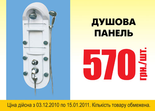 Национальная сеть декоративно-строительных гипермаркетов «Новая Линия» предлагает Вашему вниманию ХИТ ПРОДАЖ- гидромассажную душевую панель по суперцене - всего 570 грн!