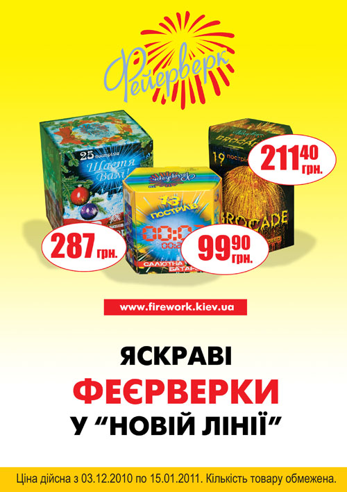 Национальная сеть декоративно-строительных гипермаркетов «Новая Линия» предлагают Вашему вниманию широкий ассортимент пиротехнических наборов, салютных установок и другой продукции, от партнера – Компании «Фейерверк», которая создаст радостную атмосферу и наполнит радостью сердца всех вокруг.