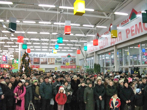 И вот, торжественные минуты наступили! Покупатели и гости гипермаркета "Новая Линия" собрались в фойе в предвкушении.