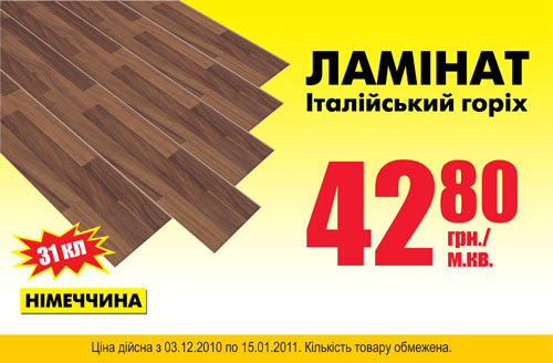 Только сейчас у Вас есть отличная возможность приобрести ламинат** «Итальянский орех» – производства Германия по ценам- от 42,80 грн м2.
