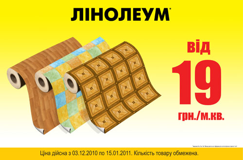 Национальная сеть декоративно-строительных гипермаркетов «Новая Линия» представляет линолеум* по специальной цене- от 19 грн за м.кв.
