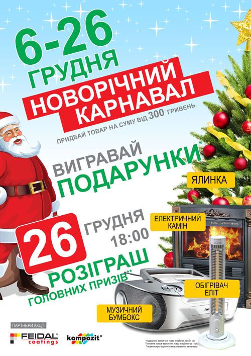 А уже 26 декабря в 18-00 «Новая Линия» ждет всех участников акции на розыгрыш ценных призов*- современный обогреватель, электрический камин, музыкальный бумбокс или елку.