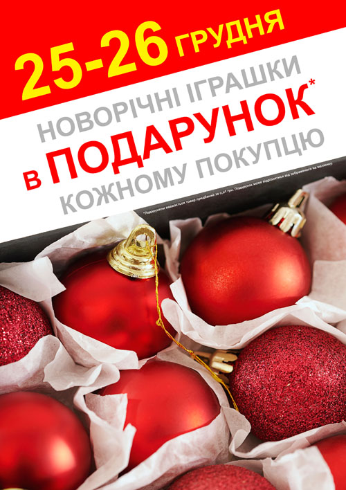 25 и 26 декабря сеть декоративно-строительных гипермаркетов «Новая Линия» приглашает всех покупателей в гости и дарит подарки! Каждый, кто 25 и 26 декабря совершит любую покупку в сети гипермаркетов «Новая Линия», гарантированно получает новогодний подарок*! Эксклюзивные елочные игрушки и много других призов и подарков ждут Вас.
