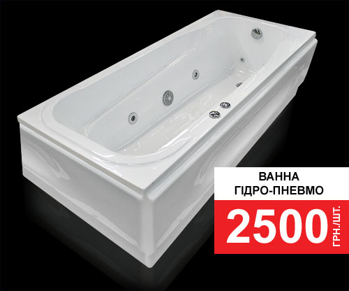 В национальной сети декоративно - строительных гипермаркетов «Новая Линия» у Вас есть возможность приобрести гидро-пневмоническую ванну размером 170 х 75 см на каркасе по цене всего 2500 грн.