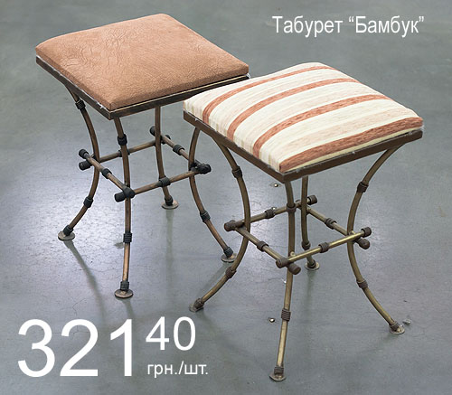 Для создания неповторимого интерьера в квартире или доме, национальная сеть декоративно-строительных гипермаркетов «Новая Линия» предлагает Вам приобрести табурет кованный по цене 321,40 грн. Такой предмет интерьера, выполненный в двух цветовых решениях, подчеркнет индивидуальность Вашей квартиры и придаст ей эксклюзивность и средневековый шарм.