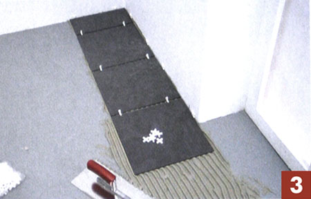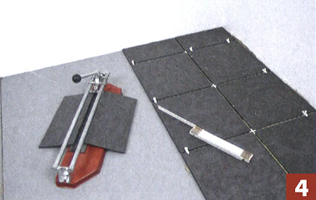 3. Облицовывая пол в нишах, вначале укладывайте целые плитки, а затем подрезанные