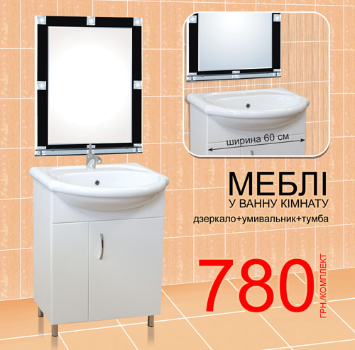 Думая о комфорте, функциональности и удобстве, национальная сеть декоративно-строительных гипермаркетов «Новая Линия» предлагает Вашему вниманию комплект мебели для ванной, который состоит из умывальника, тумбы и зеркала по цене всего 780 грн за комплект.