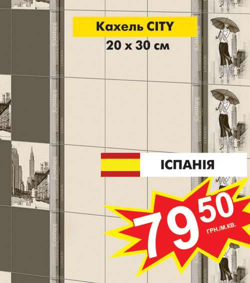 А для любителей изысканности советуем приобрести кафель CITY, производства Испания. Такая плитка порадует Вас своим изысканным рисунком и отлично освежит интерьер Вашего санузла.
