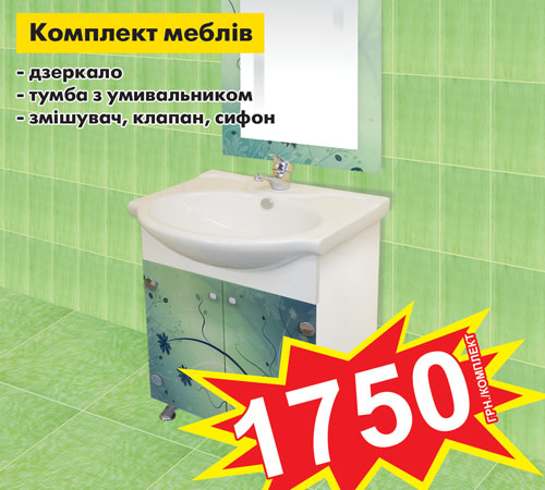 Для обеспечения максимального удобства и комфорта предлагаем Вам приобрести набор мебели для ванной комнаты. Такой набор, который состоит из зеркала, тумбы с умывальником и смесителя, выполнен с эксклюзивным рисунком, украсит Вашу ванную комнату и поможет создать в ней порядок, красоту и комфорт.