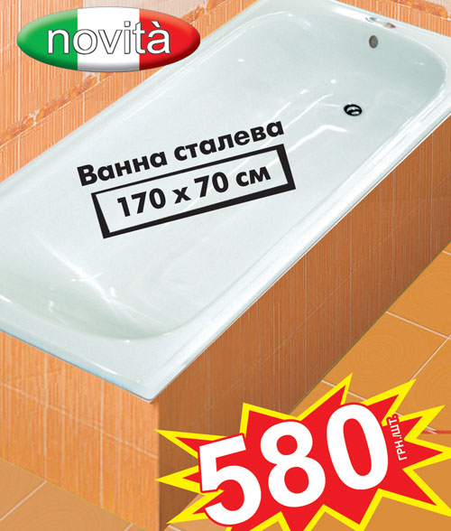 Приобретая классическую стальную ванну по цене всего 580 грн, Вы обеспечите себя и близких возможностью отдохнуть после трудового дня. Предлагаемая ванна размерами 170 х 70 см гармонично впишется практически в любую ванную комнату.