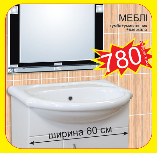 В ванной комнате не обойтись без шкафчиков, зеркала. Их стоит подбирать в тон кафелю либо по какой-то дизайнерской задумке. Самый распространенный цвет сантехники - белый, поэтому, исходя из параметров ванной – раковины - компакта, можно так же выбрать комплект мебель. В «Новой Линии» Вы можете приобрести новинку 2011 года - комплект мебели для ванной по цене- всего 780 грн.