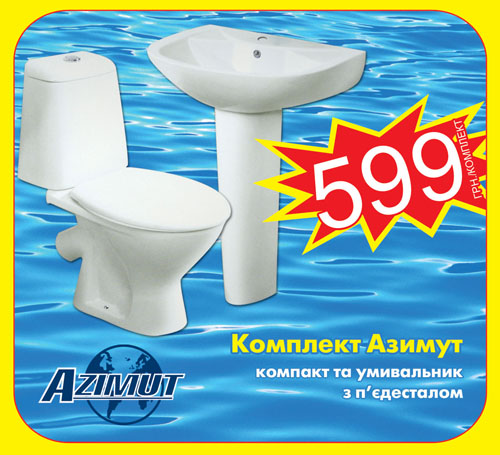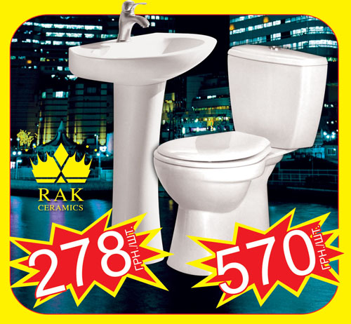 Так, высококачественные комплекты для санузла порадуют Вас своим классическим дизайном, высоким качеством и функциональностью. На свой вкус и цвет Вы можете выбрать комплект Азимут, который состоит их умывальника с пьедесталом и компакта по цене всего 599 грн или же приобрести керамику производства Объединенных Арабских Эмиратов. Современный компакт по цене 570 грн гармонично впишется в интерьер любого санузла.