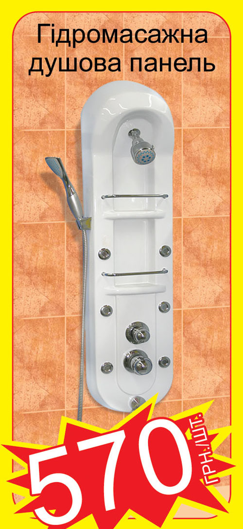 А если размеры ванной комнаты позволяют - самое время приобрести душевую кабину по цене всего 885 грн и гидромассажную панель. Устройте настоящий СПА – салон, не выходя из собственной квартиры.