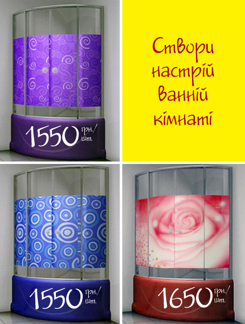 Думая о Вашем комфорте и удовольствии, национальная сеть декоративно-строительных гипермаркетов «Новая Линия» предлагает Вашему вниманию новинку 2011 года: уникальные цветные душевые кабины по цене всего от 1550 грн.