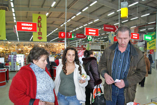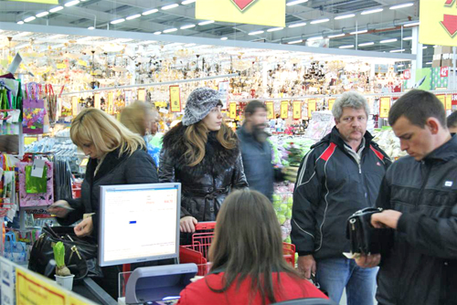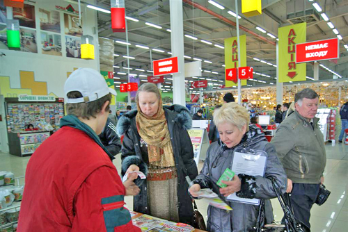 Покупатели и просто гости спешат в "Новую Линию"- ведь тут сегодня праздник по случаю первого Дня Рождения торгового центра!