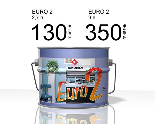 Краска Tikkurila Euro-20 применяется для окраски стен и потолков во влажных и сухих помещениях, требующих повышенной стойкости к мытью и износу. Краска Tikkurila Euro-7 и Euro-2 применяется для покраски в сухих помещениях.Краску Euro-12 целесообразно применять для окраски стен и потолков в кухнях и корридорах.