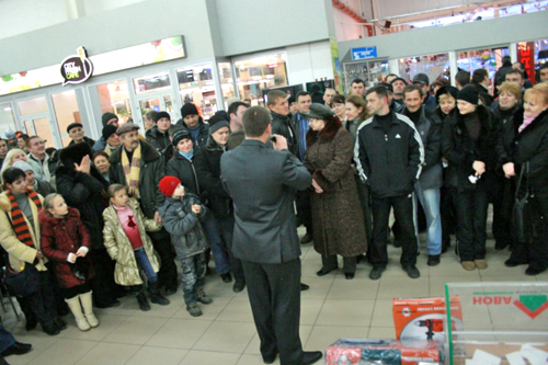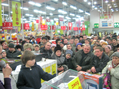 К вечеру в фойе гипермаркетов "Новая Линия" собралось большое количество желающих принять участие в акции и выиграть ценные призы и подарки.