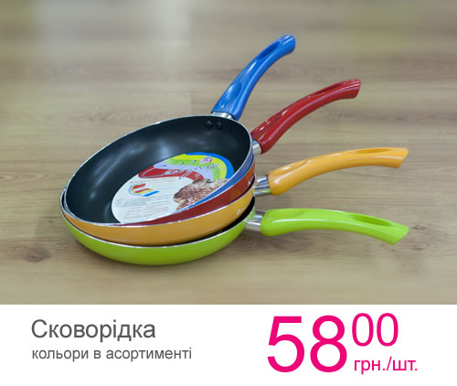 Цветные сковородки всего за 58 грн обязательно порадуют мам и бабушек.