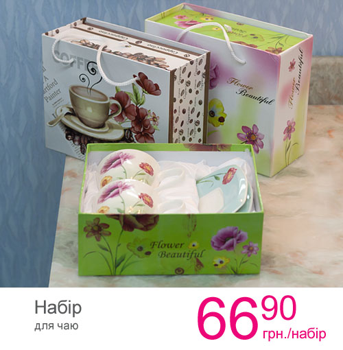 Широкий ассортимент посуды- чашки, декоративные блюдца, наборы для чаепития и кофейные сервизы, бокалы- все это несомненно порадует любимую хозяйку.