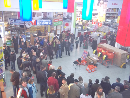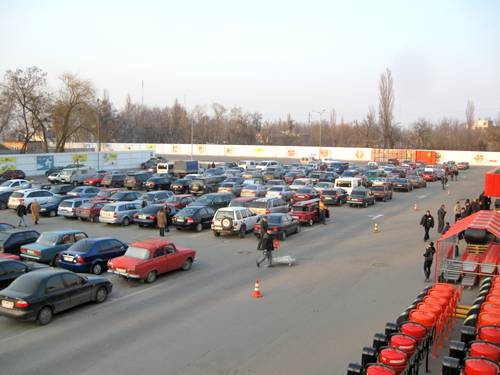 Парковки гипермаркетов "Новая Линия" наполнялись с каждым часом.