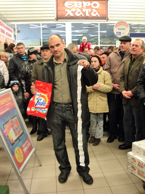 До начала розыгрыша все желающие имели возможность проявить себя во всевозможных конкурсах и викторинах и выиграть поощрительные призы. А победитель конкурса "Самый длинный чек" поразил всех количеством покупок!