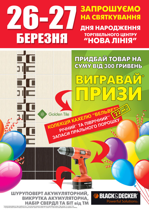 Уважаемые покупатели! 26 и 27 марта «Новая Линия» Буча празднует свой первый день рождения! В честь праздника «Новая Линия» подготовила для Вас много подарков и призов!!