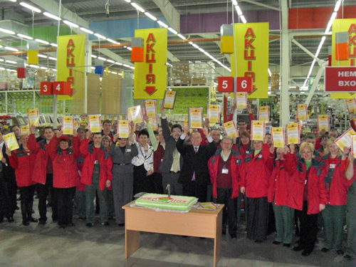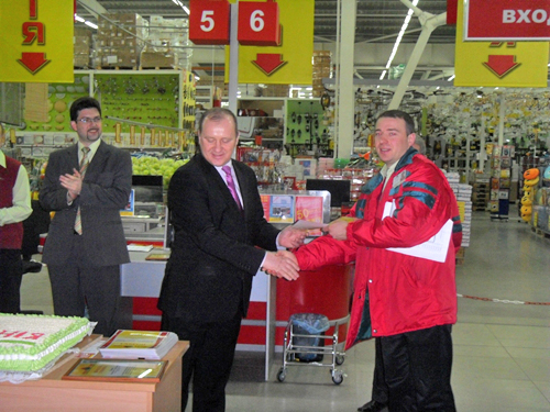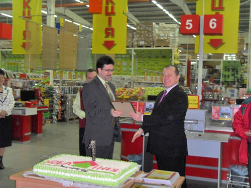 Директор торгового центра торжественно поздравил весь коллектив с первым Днем Рождения и пожелал творческих успехов, процветания и удачи в общем деле.