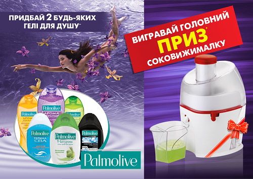 Условия акции просты: с 04 апреля 2011 г. по 01 мая 2011 г. необходимо купить 2 любых геля для душа ТМ «Palmolive» представленных в национальной сети декоративно-строительных гипермаркетов «Новая Линия» в одном чеке, заполнить анкету в отделе «прокат инструмента», опустить ее в лототрон и 01 мая в 16-00 прийти на розыгрыш Главного приза - соковыжималки.