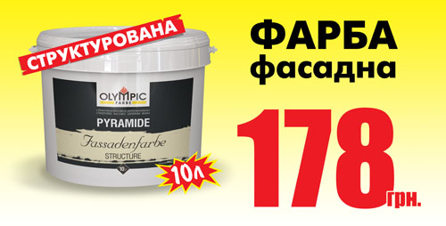 Национальная сеть декоративно-строительных гипермаркетов «Новая Линия» предлагает Вам фасадную краску ТМ Olympic по доступной цене. Только в апреле, и только в «Новой Линии» у Вас есть возможность приобрести фасадную интерьерную краску ТМ Olympic по цене всего 178 грн за 10 л. Предлагаемая краска отвечает всем требованиям, долговечная, высококачественная и поможет создать неповторимый фасад Вашего дома.