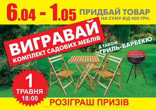 Каждый желающий может принять участие в акции и выиграть главные призы - мебель для дачи и отдыха и современные гриль-барбекю!