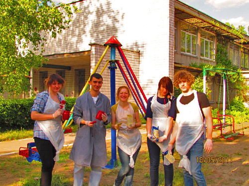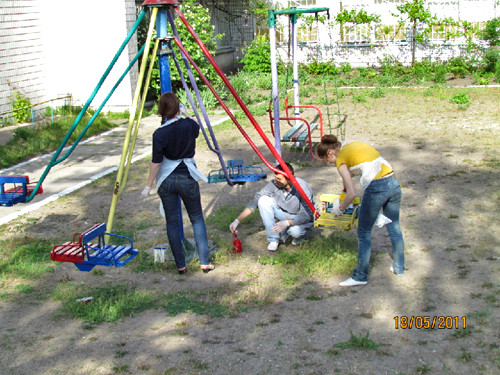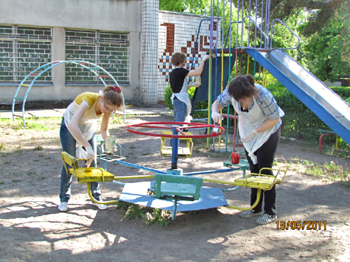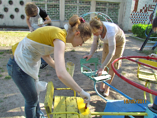 Яркие краски, кисти и сопутствующие материалы помогли детскому садику освежить детскую площадку и прилегающую территорию, внесли новые краски в жизнь самых маленьких членов общества.