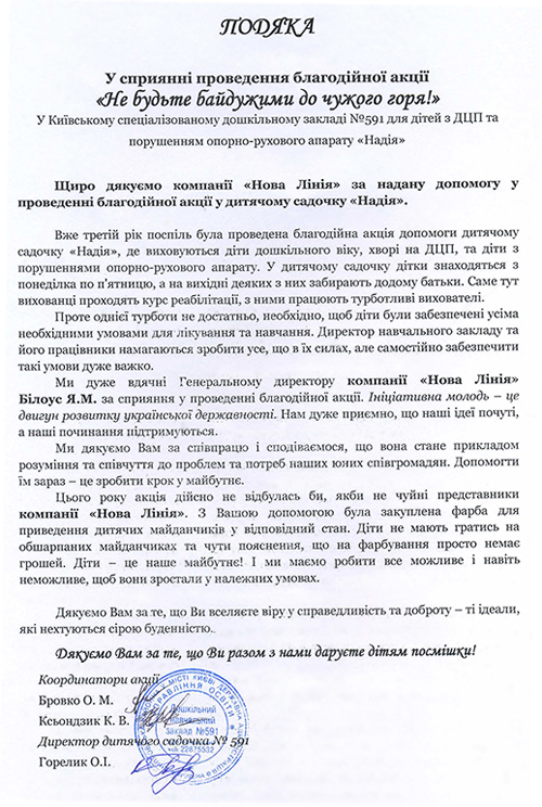 В этом году национальная сеть декоративно-строительных гипермаркетов «Новая Линия» не осталась равнодушной и стала спонсором благотворительной акции «Не будьте безразличны к чужому горю».