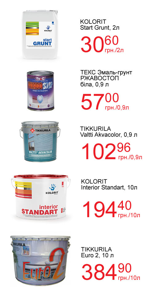 В гипермаркетах «Новая Линия» представлен широкий ассортимент всевозможных красок, лаков и эмалей от лидера на европейском рынке - ТМ Tikkurila. Высококачественные товары по доступным ценам помогут Вам создать свой неповторимый интерьер на долгие годы.