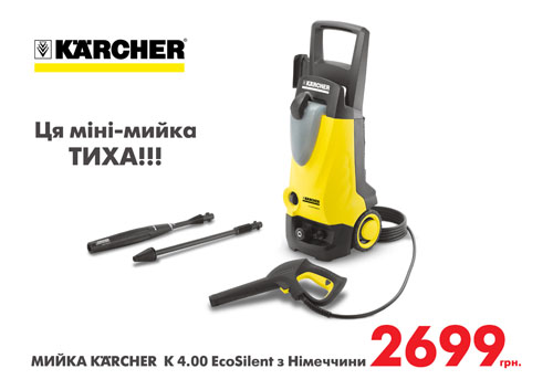 На помощь Вам придет национальная сеть декоративно-строительных гипермаркетов «Новая Линия», где Вы всегда можете приобрести высококачественные товары для дома и сада, а так же для ухода за автомобилем по доступным ценам. Так, минимойка Kärcher К4.00 EcoSilent, по цене 2699 грн. станет Вашим незаменимым помощником.