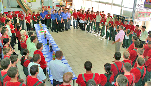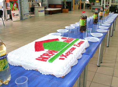Перед открытием торгового центра директор «Новой Линии» Херсон поздравил персонал с праздником, вручил грамоты, поблагодарил за плодотворную работу и пожелал достижения новых целей и осуществления всех планов и всего задуманного. А праздничный торт с самого утра поднял настроение всем сотрудникам торгового центра и зарядил позитивом и хорошим настроением на все выходные.